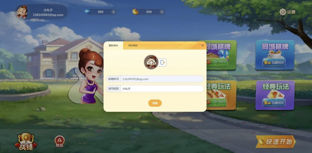 前台功能:登录、注册、找回密码、上传头像、积分购买、创建房间、加入房间、匹配房间