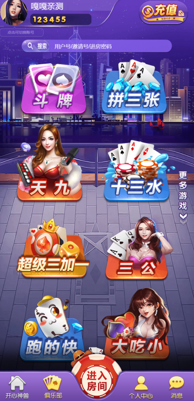 随意玩H5房卡棋牌游戏,后台服务端是PHP的,swoole_loader加密后的,无授权,前端是编译后的,共四个游戏,牛牛、金花、十三张、斗地主,带控制