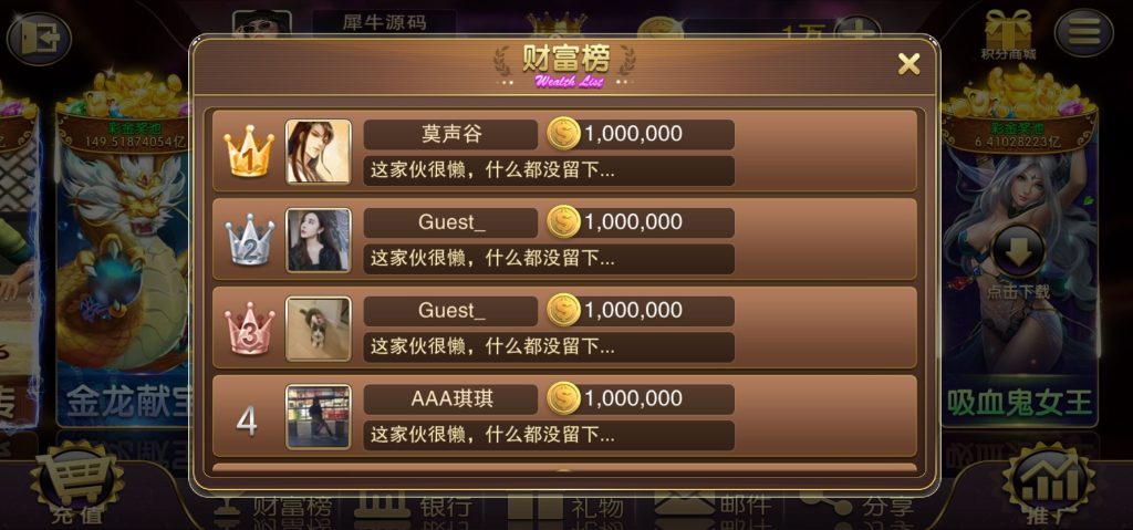 富贵封神版新U3D富贵dian玩全套下载 站长 7月前更新 关注 私信 11718 注意!源码安装后,如发现有加密,授权,需要加某人QQ,请放弃使用,防止被骗!本站不会添加任何后门木马病毒。 源码资源教程内所需的工具一般工具区都有下载,请自行前往搜索下载 富贵封神版新全套程序比较稳定,封神榜采用最近U3D技术画面精致,游戏程序非常良好,多种算法!一共22款子游戏,囊括了市面全部主流游戏,经典捕鱼,水果小玛丽,金鲨银鲨,新增女赌神,僵尸乐园等全新游戏,程序良好,无BUG,大波动和稳定算法,是留住客户首选!服务器采用linux 不懂得谨慎下载 富贵封神版新U3D富贵dian玩全套下载此内容为付费资源,请付费后查看¥799VIP¥299SVIP免费登录购买付费资源 © 版权声明文章版权归作者所有,未经允许请勿转载。THE END游戏源码金币游戏喜欢就支持一下吧点赞8 分享收藏0