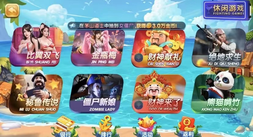 此电玩平台子游戏:李逵劈鱼,大闹天宫,四人牛牛,通比牛牛,二人牛牛,水果玛丽,九线拉王,十二生肖,月光宝盒,疯狂玛丽,赏金船长,比翼双飞,秘鲁传说,僵尸新娘,财神献礼,财神来了,绝地求生,熊猫啃竹,金瓶梅,黑红梅方等等