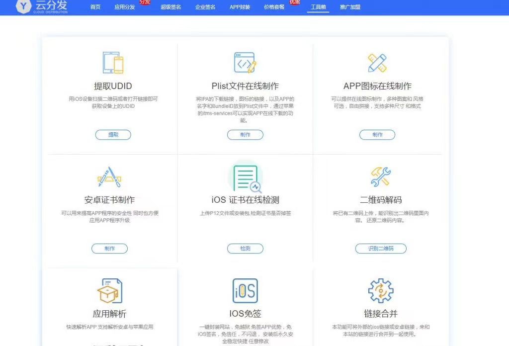 3、新增ios安装包证书检测功能,上传ipa安装包即可查询证书是否正常(工具箱)。