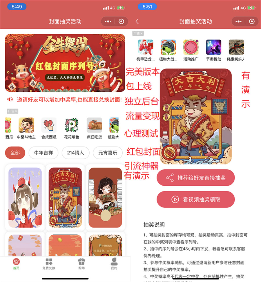 6、流量主带动收益,激励视频抽奖次数;