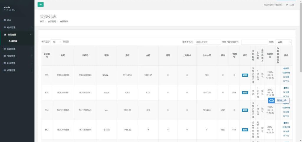 2、金币:(充值获得金币、果实可以出售获得金币);能量:(偷取获得能量、做任务获得、大转盘获得);果实:(种植收益、偷取获得、下级偷取获取、水果猜拳玩游戏获得)手机号:登录账号;绑定支付:选择微信和支付宝上传微信收款码真实姓名;客服二维码/群二维码:后台可以上传;