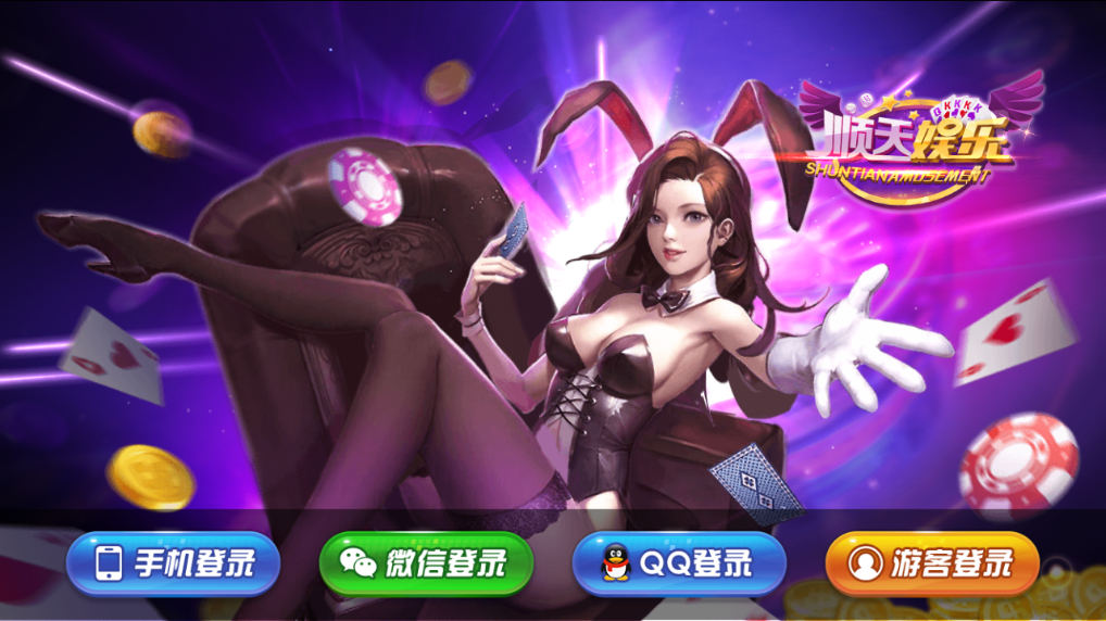 采用网狐内核二次开发,UI设计漂亮,1:1真金类型棋牌,支持手机、微信、QQ、游客等方式登录,顺天娱乐平台带多款游戏,其中有炸金花、抢庄牛牛、百家乐、港式五张、百人牛牛、飞禽走兽、水果机、红黑大战、大闹天宫、斗地主、九线拉王,李逵劈鱼,豪车转盘等游戏。