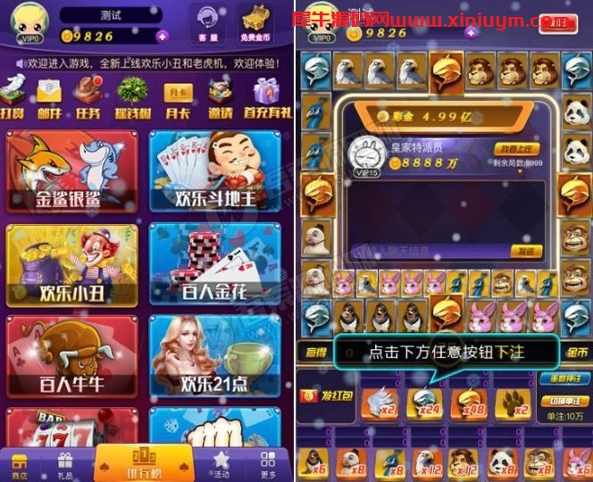 H5电玩城房卡竖版源码 站长 3年前发布 关注 私信 11115 注意!源码安装后,如发现有加密,授权,需要加某人QQ,请放弃使用,防止被骗!本站不会添加任何后门木马病毒。 源码资源教程内所需的工具一般工具区都有下载,请自行前往搜索下载 运营级H5产品,电玩城房卡版游戏合集,具有超强后台控制输赢,内含有8款:金鲨银鲨、斗地主、欢乐小丑、百人金花、百人牛牛、欢乐12点、水果机、PK游戏,源码附带有部署教程文档。前端+后端+管理后台源码 带后台超控 没跑过,不知道缺不缺啥文件 H5电玩城房卡竖版源码此内容为付费资源,请付费后查看¥88VIP免费SVIP免费登录购买付费资源 © 版权声明文章版权归作者所有,未经允许请勿转载。THE ENDH5游戏游戏源码喜欢就支持一下吧点赞5 分享收藏0