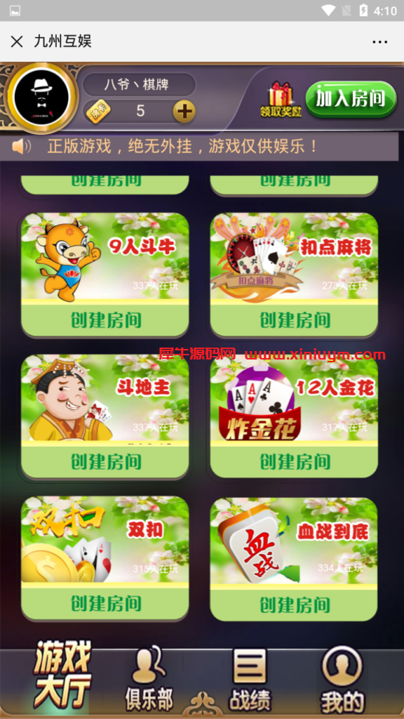 开心互娱H5微信QP游戏源码九州互娱二次开发修复版附搭建教程 站长 3年前发布 关注 私信 92310 注意!源码安装后,如发现有加密,授权,需要加某人QQ,请放弃使用,防止被骗!本站不会添加任何后门木马病毒。 源码资源教程内所需的工具一般工具区都有下载,请自行前往搜索下载 源码里面附带搭建教程,去除源码木马程序和修复程序后门,修复了某些游戏的bug问题。游戏包含牛牛、jin花、斗地主、扣点MJ、xue战MJ、双扣、十san水,后台带透视和胜率。 开心互娱H5微信QP游戏源码九州互娱二次开发修复版附搭建教程此内容为付费资源,请付费后查看¥199VIP¥38SVIP免费登录购买付费资源已售 1 © 版权声明文章版权归作者所有,未经允许请勿转载。THE ENDH5游戏游戏源码喜欢就支持一下吧点赞10 分享收藏0