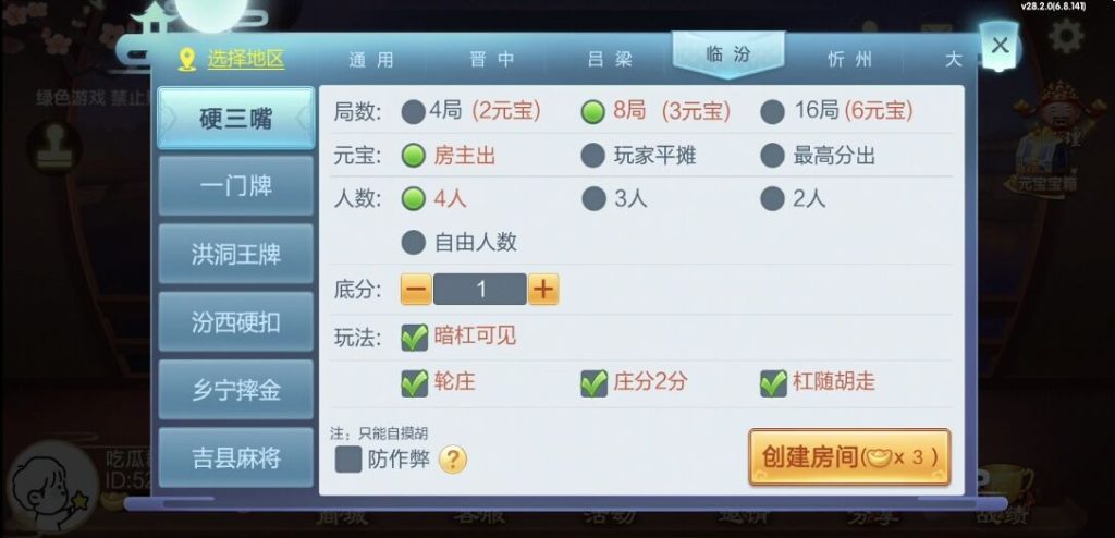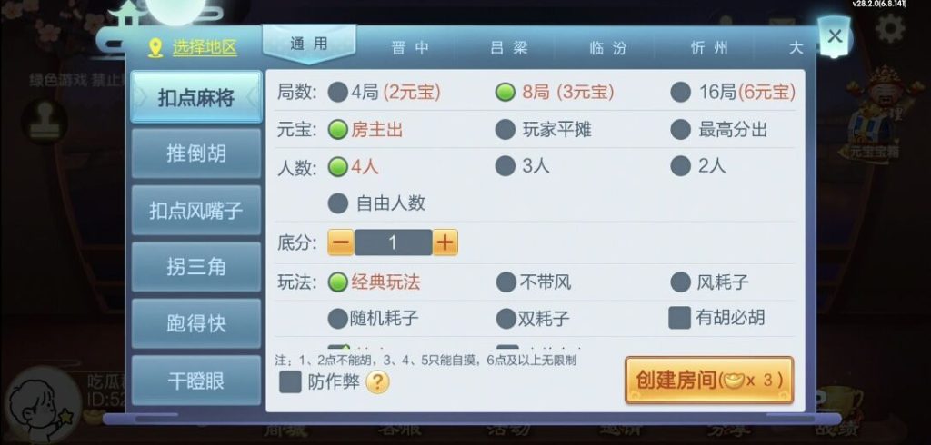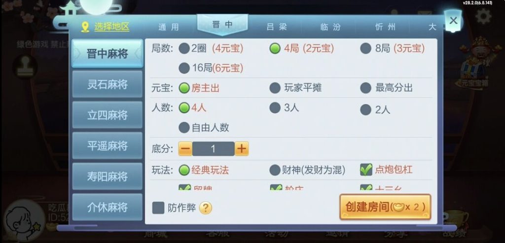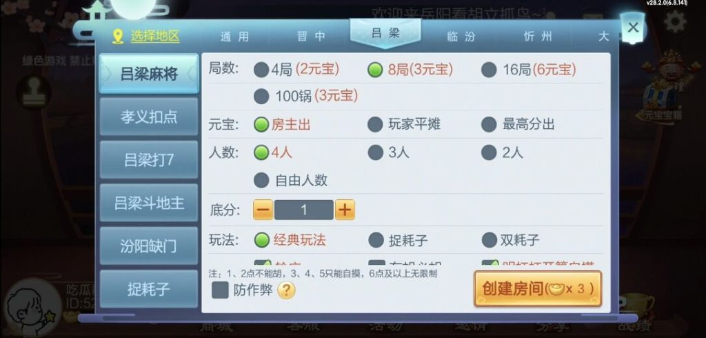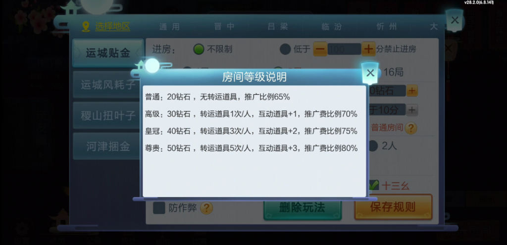 房卡加比赛模式,这比赛模式很多人也想要,子游戏也是山西地区的热门主流玩法了,稳稳的一个省运营平台。