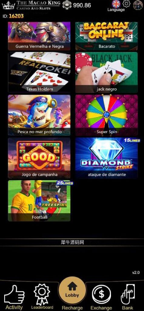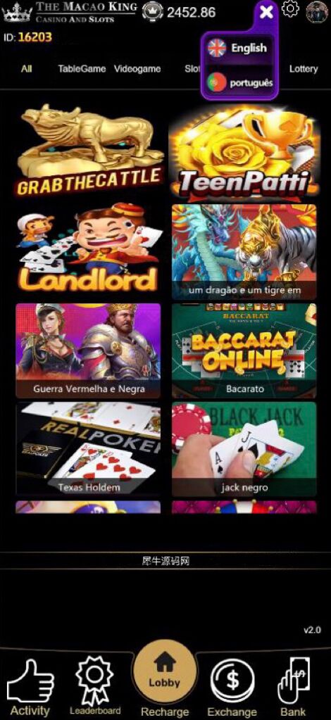 有两个前端,一个竖版前端是游戏比较少的,具体也看图。语言的话,测试的时候只看到一个英语和葡萄牙语,不知道是不是隐藏了,你们感兴趣都自己下载研究吧