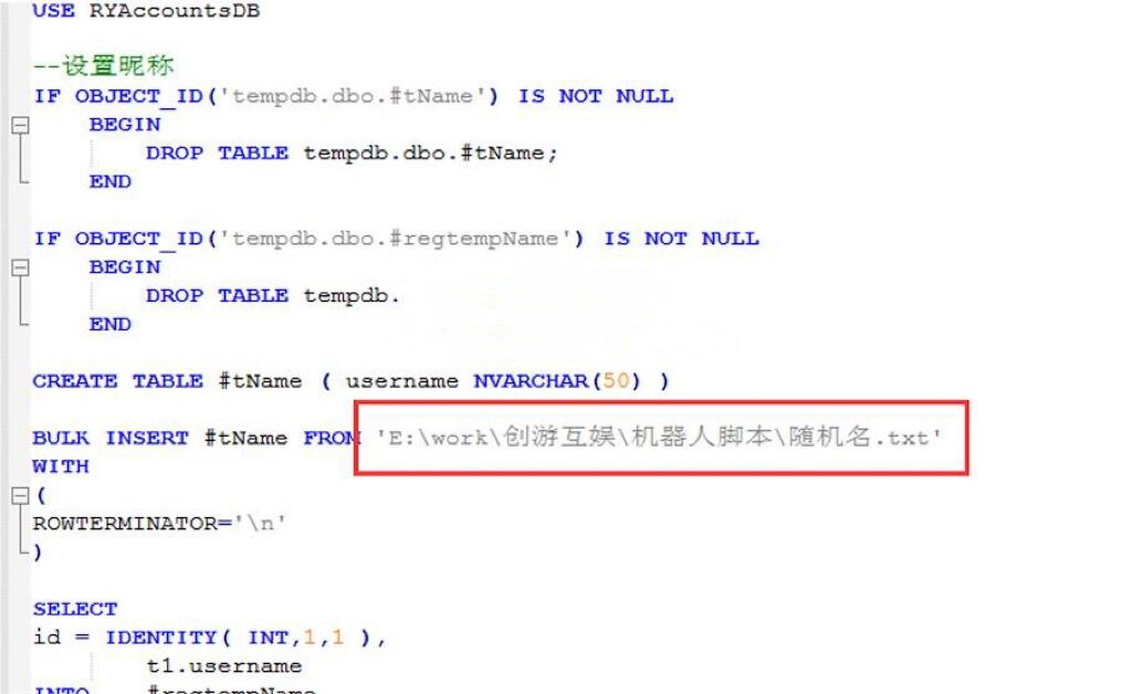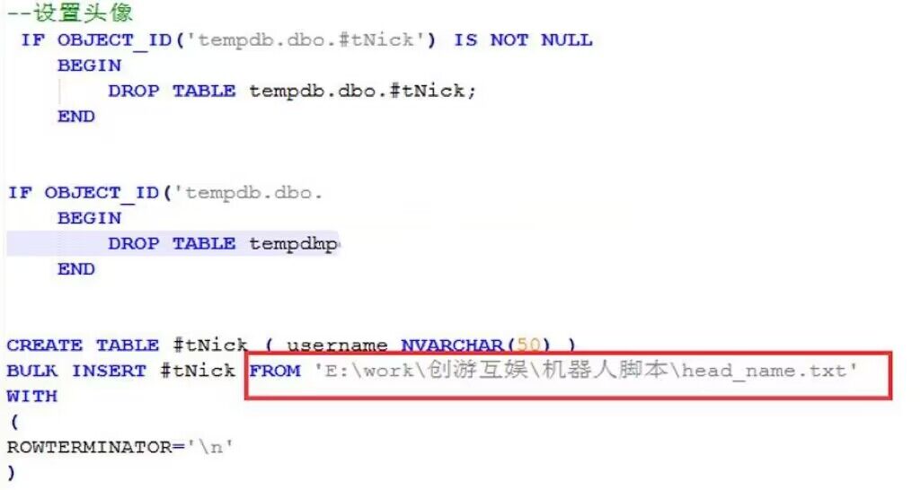4、修改 批量修改机器人昵称、头像.sql 中文件路径。如下图: