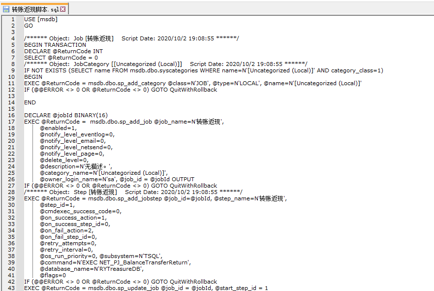 转账返现脚本 站长 2年前发布 关注 私信 8989 注意!源码安装后,如发现有加密,授权,需要加某人QQ,请放弃使用,防止被骗!本站不会添加任何后门木马病毒。 源码资源教程内所需的工具一般工具区都有下载,请自行前往搜索下载 网狐类转账返现数据库脚本,作用表RYTreasureDB。 脚本作用 在RYTreasureDB添加一个名为 “转账返现” 的作业步骤,该步骤执行一个名为NET_PJ_BalanceTransferReturn的存储过程。 需要此脚本可下载执行 转账返现脚本此内容为付费资源,请付费后查看¥10VIP¥10SVIP¥10登录购买付费资源 © 版权声明文章版权归作者所有,未经允许请勿转载。THE END技术教程喜欢就支持一下吧点赞9 分享收藏0