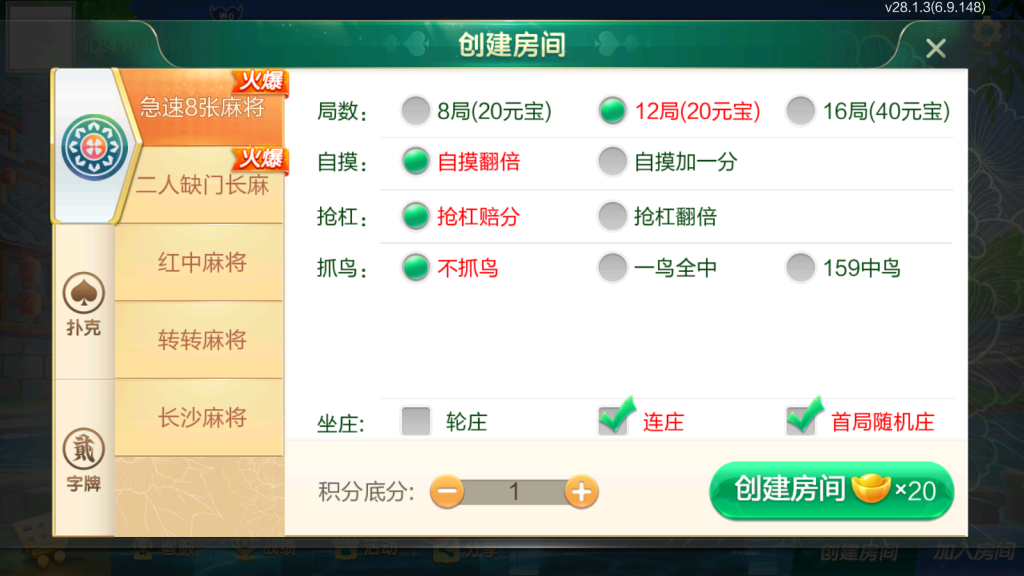 七星湘西地级市湘西麻将扑克字牌房卡端12子游戏+亲友圈乐豆模式+比赛模式+双端 站长 2年前发布 关注 私信 103014 注意!源码安装后,如发现有加密,授权,需要加某人QQ,请放弃使用,防止被骗!本站不会添加任何后门木马病毒。 源码资源教程内所需的工具一般工具区都有下载,请自行前往搜索下载 麻将:急速8张麻将,二人缺门长麻,长沙麻将,转转麻将,红中麻将扑克:11张跑得快,跑得快,斗地主,三打哈,新三打哈字牌:湘西二七十,96扑克 七星湘西地级市湘西麻将扑克字牌房卡端12子游戏+亲友圈乐豆模式+比赛模式+双端此内容为付费资源,请付费后查看¥499VIP¥199SVIP免费登录购买付费资源 © 版权声明文章版权归作者所有,未经允许请勿转载。THE END房卡游戏游戏源码喜欢就支持一下吧点赞14 分享收藏0