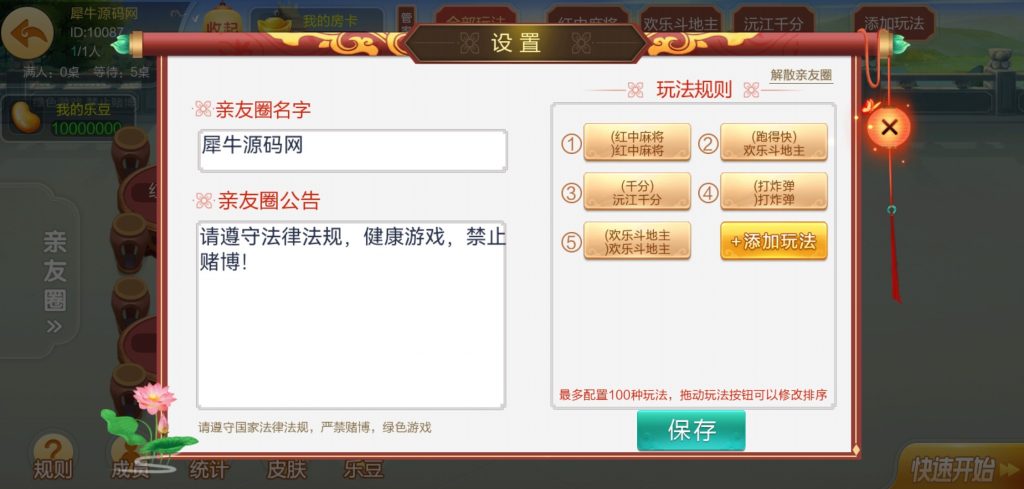 七星株洲麻将扑克字牌房卡端22子游戏+亲友圈乐豆模式+比赛模式+双端 站长 2月前更新 关注 私信 93815 注意!源码安装后,如发现有加密,授权,需要加某人QQ,请放弃使用,防止被骗!本站不会添加任何后门木马病毒。 源码资源教程内所需的工具一般工具区都有下载,请自行前往搜索下载 麻将:急速8张麻将,二人缺门长麻,长沙麻将,转转麻将,红中麻将 扑克:11张跑得快,跑得快,斗地主,三打哈,新三打哈,株洲打码子,株洲牛十别 字牌:株洲碰胡 七星株洲麻将扑克字牌房卡端22子游戏+亲友圈乐豆模式+比赛模式+双端此内容为付费资源,请付费后查看¥499VIP¥299SVIP免费登录购买付费资源 © 版权声明文章版权归作者所有,未经允许请勿转载。THE END房卡游戏游戏源码喜欢就支持一下吧点赞15 分享收藏0