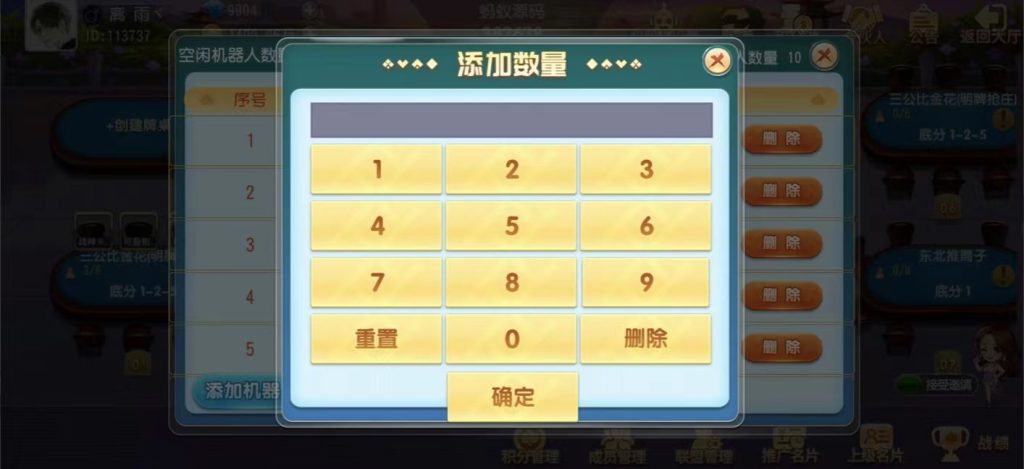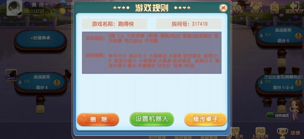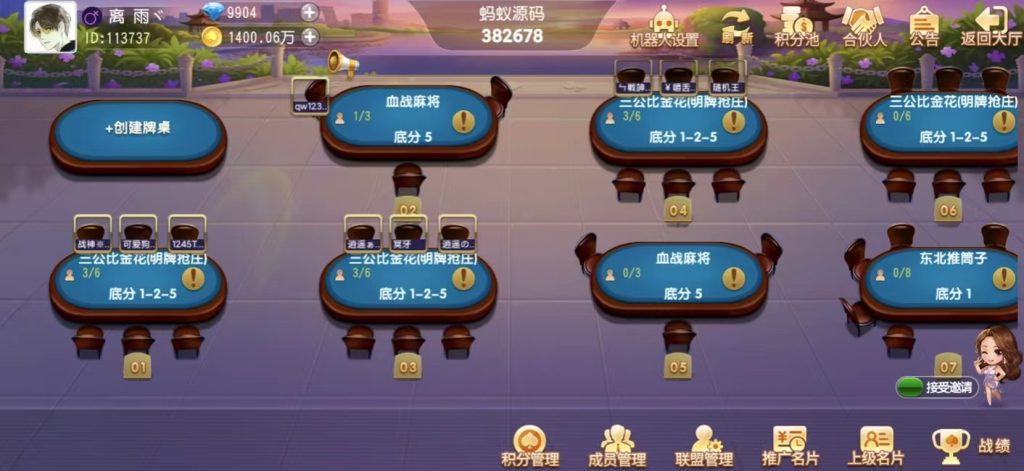 创胜系列牛小乐房卡棋牌大联盟俱乐部无授权组件 带完美机器人+控制 站长 2年前更新 关注 私信 149411 注意!源码安装后,如发现有加密,授权,需要加某人QQ,请放弃使用,防止被骗!本站不会添加任何后门木马病毒。 源码资源教程内所需的工具一般工具区都有下载,请自行前往搜索下载 包含游戏 牛牛,三公,跑得快,斗地主 比鸡 十点半 推筒子 血战麻将 红中麻将,三公比金花 等游戏 牛牛,三公,跑得快,红中麻将,三公比金花,都带陪玩机器人,其它陪玩机器人还在研究中。 搭建教程在第二个资源下载 创胜系列牛小乐房卡棋牌大联盟俱乐部无授权组件 带完美机器人+控制此内容为付费资源,请付费后查看¥399VIP¥99SVIP免费登录购买付费资源 © 版权声明文章版权归作者所有,未经允许请勿转载。THE END房卡游戏游戏源码喜欢就支持一下吧点赞11 分享收藏1